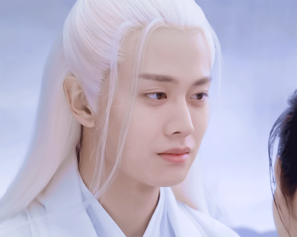 仙氣飄飄的白髮造型,多少釋放了點任嘉倫的顏值,但這顯眼的額頭,在整個五官當中還是顯得過于突出,影響了整體效果。